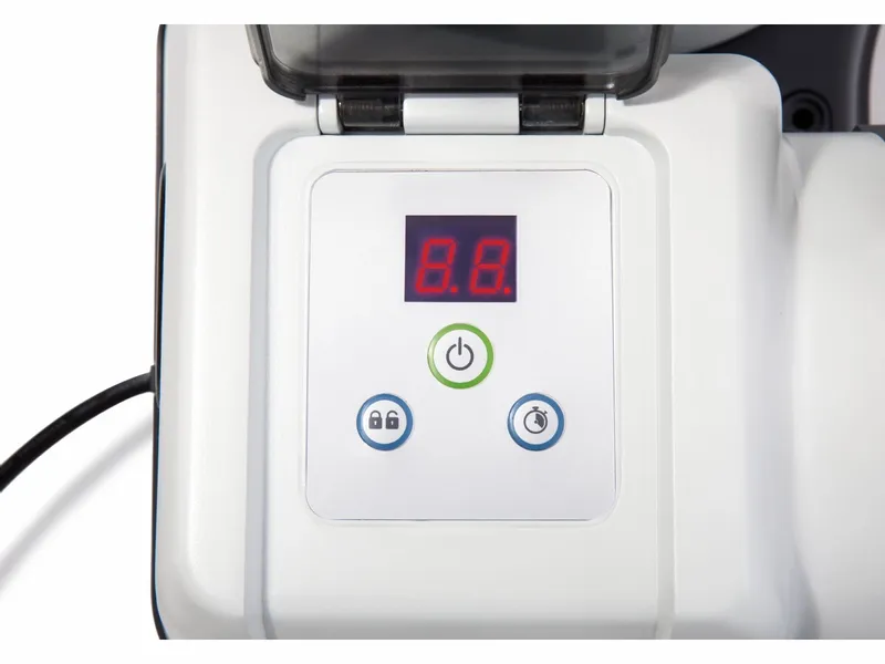 Deze Intex zandfilterpomp bedien je eenvoudig via een timer. Zo kun je de pomp gewoon aan laten staan. Je stelt naar wens een dagdeel in, van bijvoorbeeld 8 uur, waarop de pomp het water door het filtervat pompt. Dit gebeurt vervolgens telkens automatisch tussen de ingestelde tijden. De pomp wordt daarnaast geleverd met een omvormer naar 12 Volt, wat veilig is voor zwembaden. Aan de pomp zit standaard een beveiligde RCD stekker, die automatisch afslaat bij te hoge spanning. Zodra je de pomp gekoppeld hebt met je zwembad, hoef je deze alleen nog in te pluggen, in te stellen, en de Intex zandfilterpomp doet de rest.